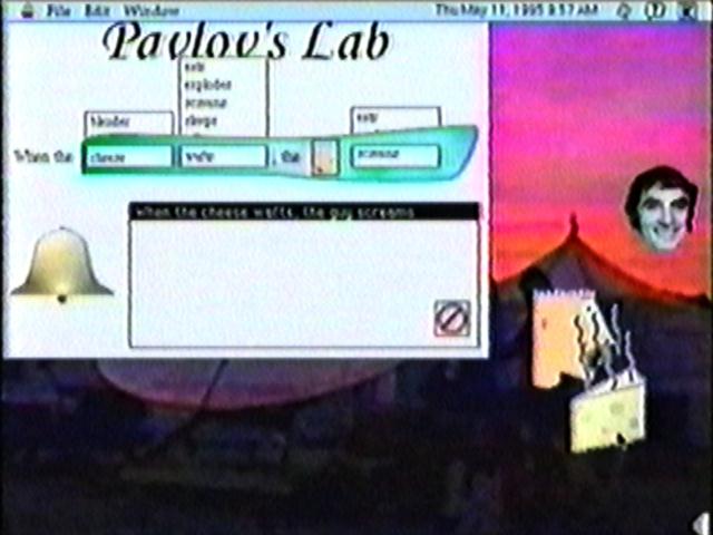 This is Pavlov's lab here. This is a prototype, but it's going to be dynamically configured by the object that you drag into it. We can say, like, when the dude sleeps, screams, explodes, sleeps, talks, wafts, no, when the cheese wafts, the dude sleeps, explodes, screams, screams. Yeah, all right.